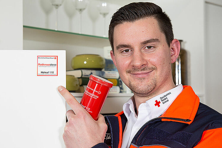 Sie ist klein, rot und sorgt für ein sicheres Gefühl zu Hause: Die Rotkreuzdose. Die Notfalldose vom Deutschen Roten Kreuz.