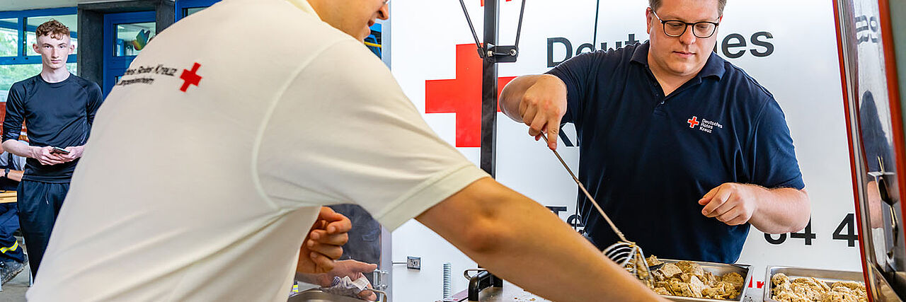 Natürlich muss es nicht erst zu einer Katastrophe kommen, damit es aus den Töpfen dampft und in der Pfanne brutzelt. Bei Lehrgängen, Veranstaltungen und Übungen sind die Rotkreuz-Köchinnen und -Köche gefragt. "Mit unserem Können unterstützen wir auch andere Projekte des Roten Kreuzes." Der Kreisverband sowie Vereine, Initiativen und Betriebe schätzen die Kreativität der Einsatzkräfte. Sie wissen, sie bekommen ein vorzügliches Essen.
